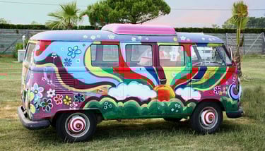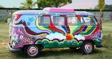 - Се поврзуваше со движењето за мир и љубов, а често беше украсен со цветни дизајни и психоделични шари.